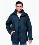 Polyester outer with PVC coating. Polyester mesh body lining. Polyester sleeve lining. Waterproof with taped seams. Detachable mesh lined hood with stud closure, toggles and visor. Fleece lined collar. Collar high full length zip with studded storm flap. Three front zip pockets. Adjustable tear release cuffs. Drawcord hem. Zip access for decoration. Zip out polyester fleece jacket. Collar high full zip. Open cuffs and hem.