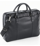 Full grain leather look NuHide® PU. Pinstripe lining. Self fabric carry handles. Adjustable shoulder strap. Full length front zip pocket. Padded laptop pocket compatible up to 15.6". Padded internal iPad®/Tablet compartment. Organiser section. Security zip pocket. Gunmetal fittings. Tear out label. Capacity 9 litres.